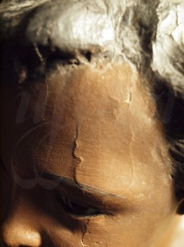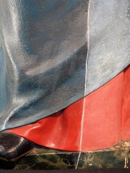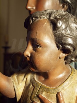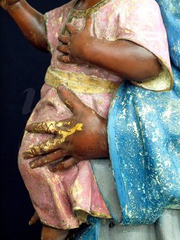 grietas de manos y rostros tanto de la Virgen como del Niño.