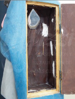 los materiales de la talla. Posteriormente, se realizó un estucado en las mismas, además del relicario. Para finalizar, se