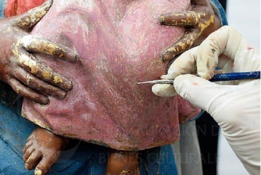 comenzar las labores de restauración, se procedió a retirar toda indumentaria