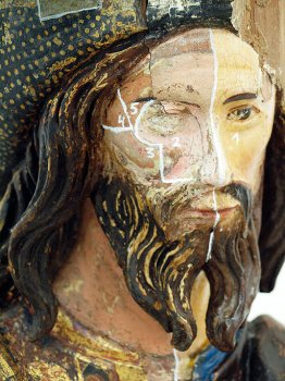 El principal problema de este grupo escultórico era la superposición de diferentes capas de repintes aplicadas en distintos espacios de tiempo a lo largo de su historia material.