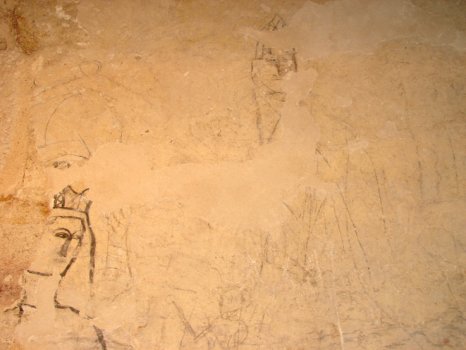 La pintura del muro norte la podemos catalogar como paño de ensayo donde no se puede definir un tema concreto, sino probaturas de autor de rostros, manos y objetos diversos sin conexión entre ellos. Sus patologÃas eran coincidentes con el paño oeste.
