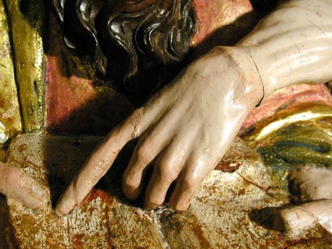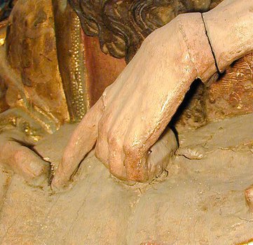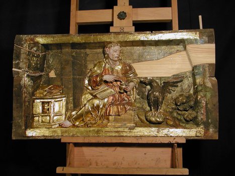 -Tratamiento de conservación de las policromÃas, dorados y capas pictóricas (fijación) con productos afines a los componentes originales.