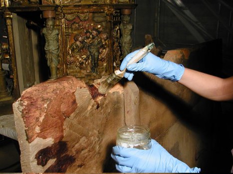 -Protección preventiva de dorados y policromÃas con problemas de adhesión.