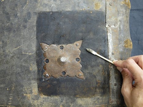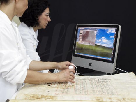Y, finalmente, en la cuarta fase de intervención se realizó una estabilización higroscópica del pergamino con elementos quÃmicos que garantizasen su estabilidad y flexibilidad, asà como la limpieza y reintegración tanto de la encuadernación como de las guardas y cierres de metal perdidos.