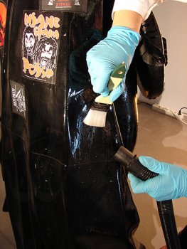 Posteriormente, se procedió a una limpieza con agua destilada, a través de hisopo, en los huecos internos más difÃciles de llegar con la brocha, asà como para eliminar los restos de adhesivos.