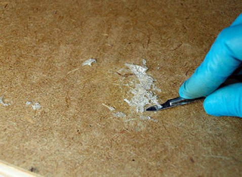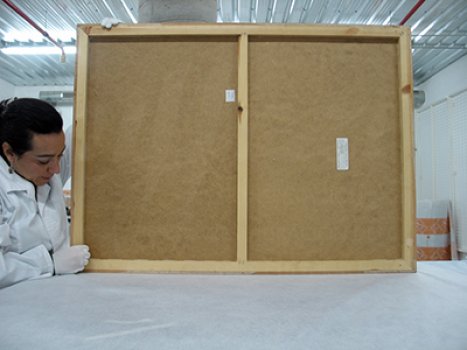 la obra original del panel de aglomerado. Después, se procedió a la retirada del