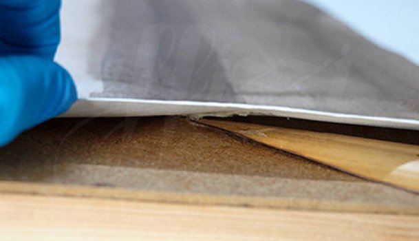 de adhesivo cristalizado que creaba tensiones en el soporte de la obra.
