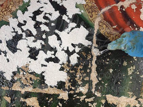 de cal, pérdidas de policromÃa, levantamientos, desgastes y repintes.