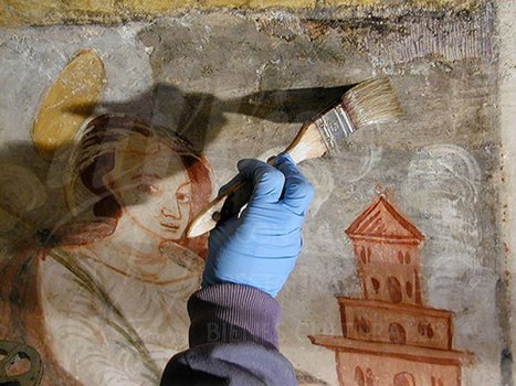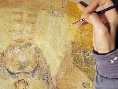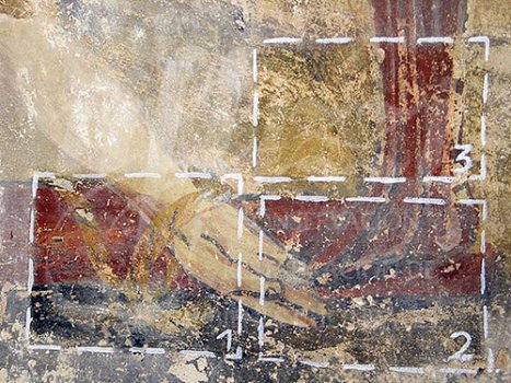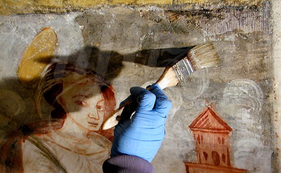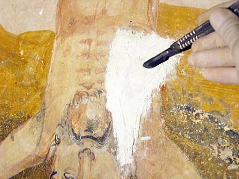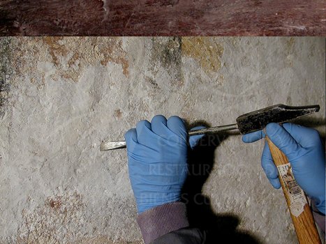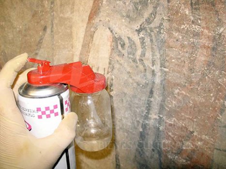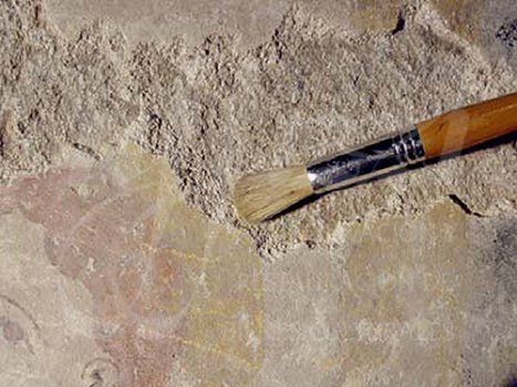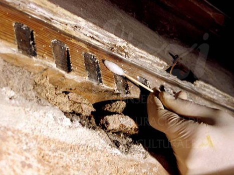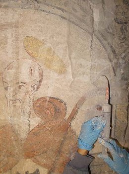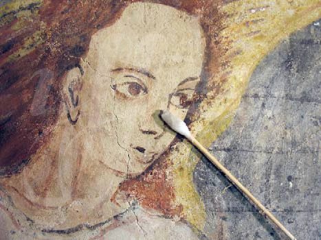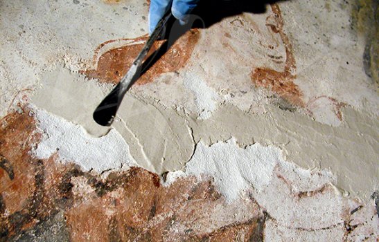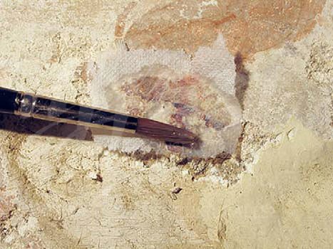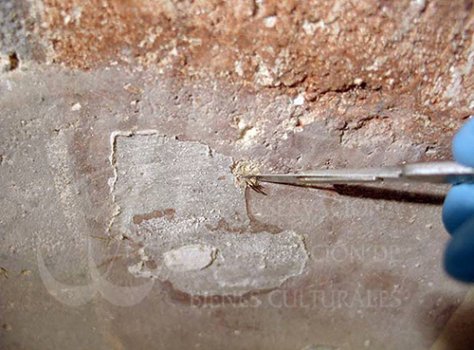 Antes de la consolidación cromática de las pinturas murales, se