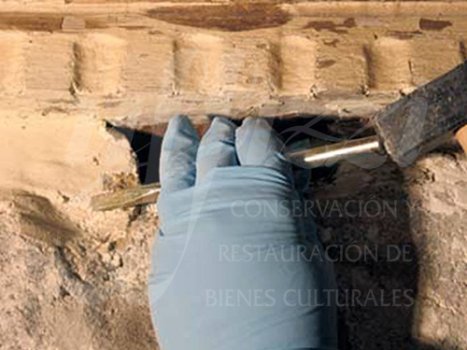 en el interior de los soportes, semejante a la primera fase. Después, se consolidaron las oquedades entre los