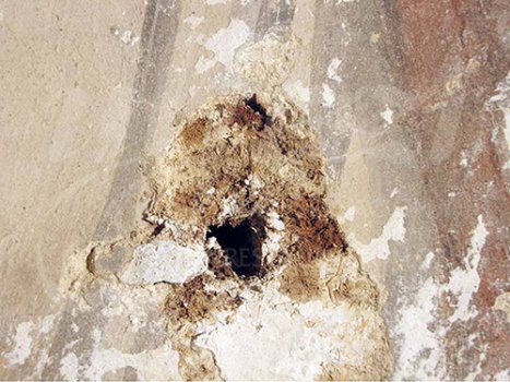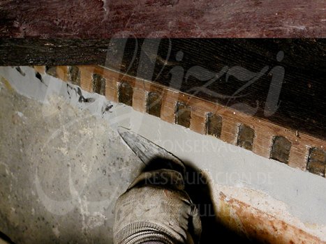 material de relleno, filtraciones de óxido en el intonaco,