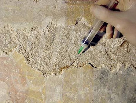 lagunas de las pinturas murales. Para finalizar, se aplicó una resina acrÃlica diluida en disolventes
