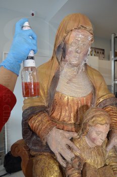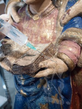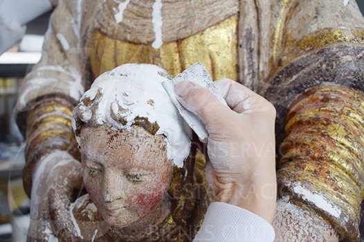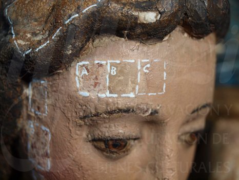 Escultura policromada de Santa Ana enseñando a leer a la Virgen
